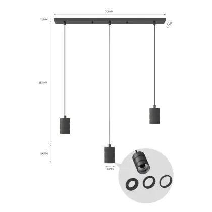 Beschreibung Calex Retro Pendelleuchte Cordset Rechteckig Metall Schwarz |incl. Kabel 2 Meter - Geeignet für 3xE27