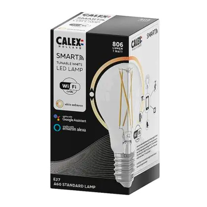 Die Smart-Home Leuchte von Calex erinnert zwar an eine klassische Glühbirne mit E27 Sockel, sie ist jedoch mit der neusten LED-Technik ausgestattet, welche viele Vorteile mit sich bringt. Dazu gehören eine lange Lebensdauer, verbunden mit geringen Ersatz- und Wartungskosten, wodurch eine schnelle Amortisation des Kaufpreises garantiert wird. Zudem sind LEDs umweltfreundlich, denn anders als beispielsweise Halogenlampen beinhalten sie kein Quecksilber. Wechseln Sie Ihre herkömmliche E27 Lampe einfach gegen das smarte LED-Modell von Calex aus!