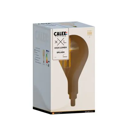 Die Calex XXL Splash Hohe Lumen Gold LED E27 Fadenlampe 3W 250lm- 821 Extra Warmweiß | Dimmbar ist eine effiziente E27 LED-Lampe mit Retrodesign und der perfekte Ersatz für Ihre konventionellen 100W Lampen mit E27. Zudem strahlt sie Licht in der Farbtemperatur 2100K - Extra Warmweiß aus und punktet durch eine lange Lebensdauer.
