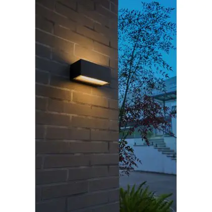 Die D-Lite Bello Wandleuchte überzeugt mit ihrer klaren, modernen Gestaltung und der effektvollen Lichtverteilung nach oben und unten, die Fassaden und Innenwände stilvoll in Szene setzt. Die warmweiße Lichtfarbe sorgt für eine angenehme Atmosphäre, während die integrierte LED Strom spart und lange hält. Ideal für alle, die auf der Suche nach einer designorientierten und praktischen Beleuchtungslösung sind.