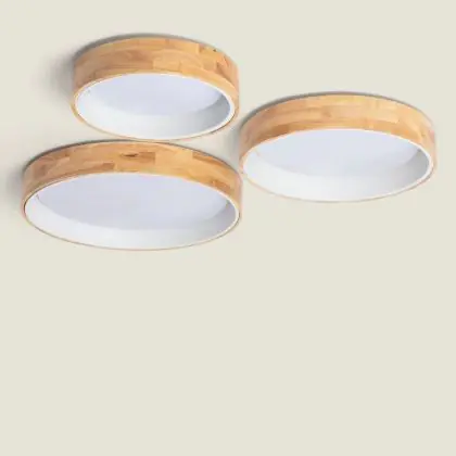 Beschreibung Deckenleuchte Rund Holz Metall Weiß 15W 1000lm - 830-840-860 CCT