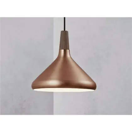 Die Nordlux Pendelleuchte aus der Modellreihe Nori zeichnet sich durch ein modernes Design und einen schicken Materialmix aus. Der Lampenschirm besteht aus Metall. Das Markenzeichen der Modellserie ist die Holzspitze in geöltem Nussbaum. Hinweis: Die Leuchte kommt ohne Leuchtmittel daher - passende E27 LED-Lampen finden Sie jedoch in unserem Shop.