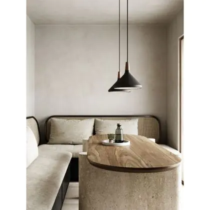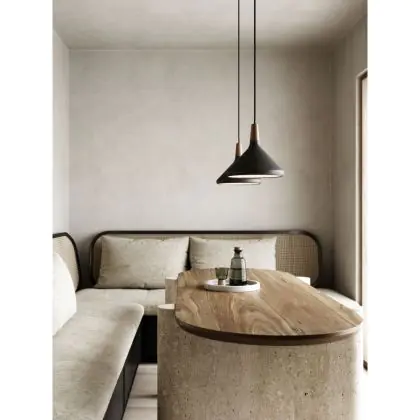 Die Nordlux Pendelleuchte aus der Modellreihe Nori zeichnet sich durch ein modernes Design und einen schicken Materialmix aus. Der Lampenschirm besteht aus Metall. Das Markenzeichen der Modellserie ist die Holzspitze in geöltem Nussbaum. Hinweis: Die Leuchte kommt ohne Leuchtmittel daher - passende E27 LED-Lampen finden Sie jedoch in unserem Shop.