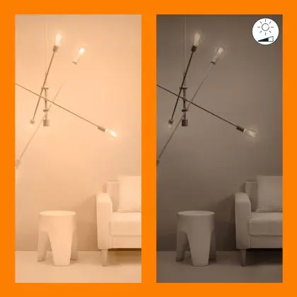 4. Dim to Warm: Durch Dimmen wird das Licht wärmer (gelber). Je stärker Sie dimmen, desto wärmer wird die Farbe.