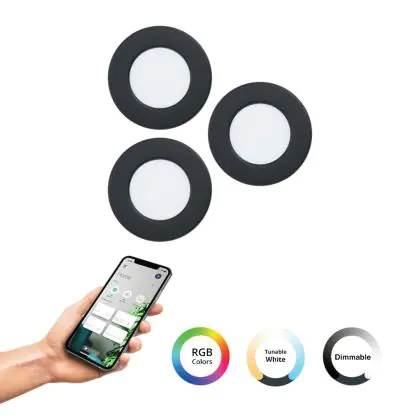 Beschreibung Eglo Connect.Z Smart Einbau Spot Badezimmerbeleuchtung Fueva 6-Z Plastik Schwarz 8.4W 1020lm - 827-865 Abstimmbares Weiß + RGB | Dimmbar