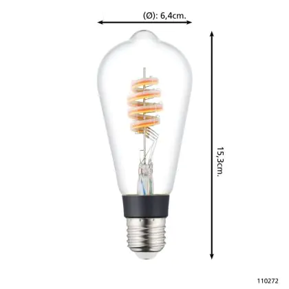 Die Eglo Connect.Z Smart LED Edison E27 Fadenlampe Klar 4.9W 400lm - 830 Warmweiß + RGB | Dimmbar - Ersatz Für 40W ist eine effiziente E27 LED-Lampe mit Retrodesign und der perfekte Ersatz für Ihre konventionellen 40W Lampen mit E27. Zudem strahlt sie Licht in der Farbtemperatur 3000K - Warmweiß + RGB aus und punktet durch eine lange Lebensdauer.