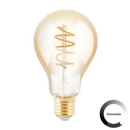 Die Eglo LED Birne E27 Fadenlampe Messing 4W 245lm - 820 Extra Warmweiß | Dimmbar - Ersatz Für 25W ist eine effiziente E27 LED-Lampe mit Retrodesign und der perfekte Ersatz für Ihre konventionellen 25W Lampen mit E27. Zudem strahlt sie Licht in der Farbtemperatur 2000K - Extra Warmweiß aus und punktet durch eine lange Lebensdauer.