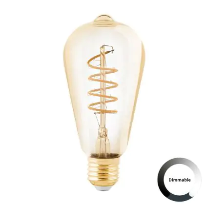 Die Eglo LED Edison E27 Fadenlampe Messing 4W 245lm - 820 Extra Warmweiß | Dimmbar - Ersatz Für 25W ist eine effiziente E27 LED-Lampe mit Retrodesign und der perfekte Ersatz für Ihre konventionellen 25W Lampen mit E27. Zudem strahlt sie Licht in der Farbtemperatur 2000K - Extra Warmweiß aus und punktet durch eine lange Lebensdauer.