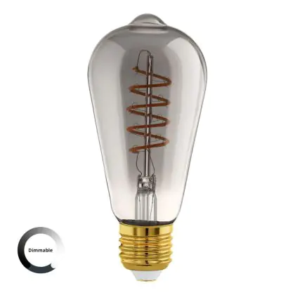 Die Eglo LED Edison E27 Fadenlampe Smokey 4W 100lm - 820 Extra Warmweiß | Dimmbar - Ersatz Für 15W ist eine effiziente E27 LED-Lampe mit Retrodesign und der perfekte Ersatz für Ihre konventionellen 15W Lampen mit E27. Zudem strahlt sie Licht in der Farbtemperatur 2000K - Extra Warmweiß aus und punktet durch eine lange Lebensdauer.
