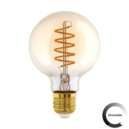 Die Eglo LED Globe E27 Fadenlampe Messing 4W 245lm - 820 Extra Warmweiß | Dimmbar - Ersatz Für 25W ist eine effiziente E27 LED-Lampe mit Retrodesign und der perfekte Ersatz für Ihre konventionellen 25W Lampen mit E27. Zudem strahlt sie Licht in der Farbtemperatur 2000K - Extra Warmweiß aus und punktet durch eine lange Lebensdauer.