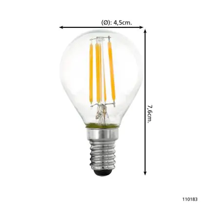 Die Eglo LED Kugel E14 Fadenlampe Klar 4.5W 470lm - 827 Extra Warmweiß | Dimmbar - Ersatz Für 40W ist eine effiziente E14 LED-Lampe mit Retrodesign und der perfekte Ersatz für Ihre konventionellen 40W Lampen mit E14. Zudem strahlt sie Licht in der Farbtemperatur 2700K - Extra Warmweiß aus und punktet durch eine lange Lebensdauer.