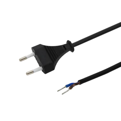 Euro Stromkabel Mit Eben Stecker 2x 0,75 2m Schwarz