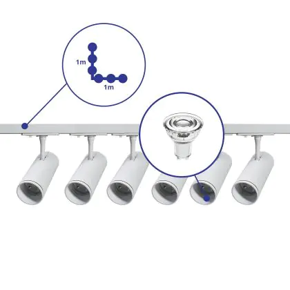 | Herstellername | Complete L shaped 1-Phase Track Set White incl. 6x Spot fixture + GU10 2700K 3W Dim – 1 x 1 meter i | |