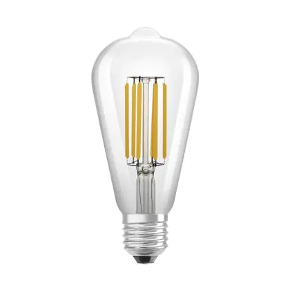 Die Ledvance Classic LED E27 Edison Fadenlampe Klar 4W 840lm - 830 Warmweiß | Ersatz für 60W ist eine effiziente E27 LED-Lampe mit Retrodesign und der perfekte Ersatz für Ihre konventionellen 60W Lampen mit E27. Zudem strahlt sie Licht in der Farbtemperatur 3000K - Warmweiß aus und punktet durch eine lange Lebensdauer.