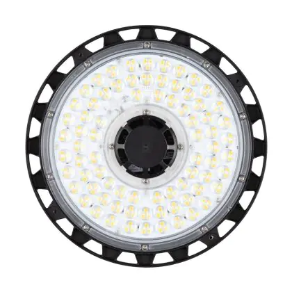 Diese LED-Hallenleuchte punktet mit einer Leuchtkraft von 13.000 Lumen (lm) und strahlt damit besonders viel Helligkeit aus. Die ebenfalls hohe Lichtausbeute von 140 lm/W zeugt von einer guten Effizienz. Wenn Sie die Stärke dieses Lichts mit dem Ihrer konventionellen Lichtlösung vergleichen möchten, empfehlen wir Ihnen einen Blick in unsere praktische Tabelle Lumen in Watt umrechnen.