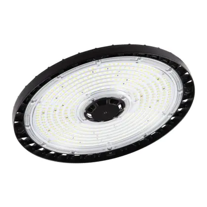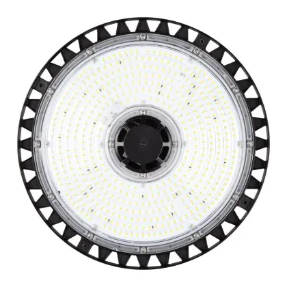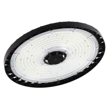 Diese LED-Hallenleuchte punktet mit einer Leuchtkraft von 22.000 Lumen (lm) und strahlt damit besonders viel Helligkeit aus. Die ebenfalls hohe Lichtausbeute von 140 lm/W zeugt von einer guten Effizienz. Wenn Sie die Stärke dieses Lichts mit dem Ihrer konventionellen Lichtlösung vergleichen möchten, empfehlen wir Ihnen einen Blick in unsere praktische Tabelle Lumen in Watt umrechnen.
