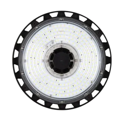 Diese LED-Hallenleuchte punktet mit einer Leuchtkraft von 13.000 Lumen (lm) und strahlt damit besonders viel Helligkeit aus. Die ebenfalls hohe Lichtausbeute von 140 lm/W zeugt von einer guten Effizienz. Wenn Sie die Stärke dieses Lichts mit dem Ihrer konventionellen Lichtlösung vergleichen möchten, empfehlen wir Ihnen einen Blick in unsere praktische Tabelle Lumen in Watt umrechnen.