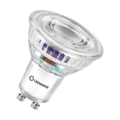Die Ledvance LED PAR16 GU10 Reflektor 2W 360lm 36D - 840 Kaltweiß | Ersatz Für 50W ist eine effiziente GU10 LED-Lampe und der perfekte Ersatz für Ihre konventionelle Halogenlampe mit 50W und einem GU10-Sockel, bei welchem die zwei Stifte einen Abstand von 10 mm zueinander haben. Zudem strahlt das Produkt Licht in der Farbtemperatur 4000K - Kaltweiß aus und punktet durch eine lange Lebensdauer.