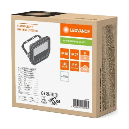 Beschreibung Ledvance Led-Scheinwerfer Aluminium Schwarz 8W 1200lm 100D - 840 Kaltweiß | IP66 - Symmetrisch