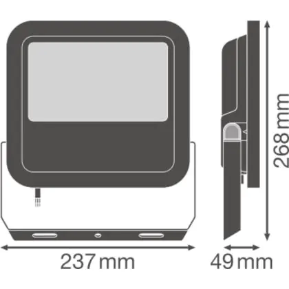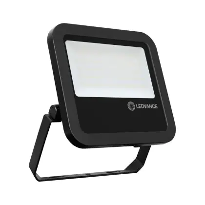 Der Ledvance LED-Scheinwerfer 65W 3000K 7150lm IP65 | Schwarz - Symmetrisch ist in stilvollem Schwarz gehalten. Dank der hohen Robustheit kann die Leuchte problemlos in Außenbereichen eingesetzt werden.