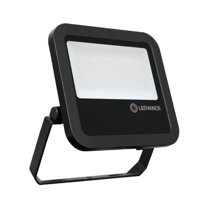Der Ledvance LED-Scheinwerfer 65W 6500K 8000lm IP65 | Schwarz - Symmetrisch ist in stilvollem Schwarz gehalten. Dank der hohen Robustheit kann die Leuchte problemlos in Außenbereichen eingesetzt werden.