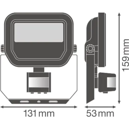 Der Ledvance LED-Scheinwerfer 10W 3000K 1100lm IP65 ist in stilvollem Schwarz gehalten und zeichnet sich durch seinen Abstrahlwinkel von 100°x100° aus. Dank der hohen Robustheit kann die Leuchte problemlos in Außenbereichen eingesetzt werden. Ein besonderes Merkmal des Fluters ist sein Sensor. Der Erfassungswinkel des Bewegunssensors beträgt 40°-60°.
