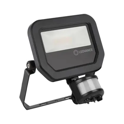 Der Ledvance LED-Scheinwerfer 10W 4000K 1200lm IP65 ist in stilvollem Schwarz gehalten und zeichnet sich durch seinen Abstrahlwinkel von 100°x100° aus. Dank der hohen Robustheit kann die Leuchte problemlos in Außenbereichen eingesetzt werden. Ein besonderes Merkmal des Fluters ist sein Sensor. Der Erfassungswinkel des Bewegunssensors beträgt 40°-60°.