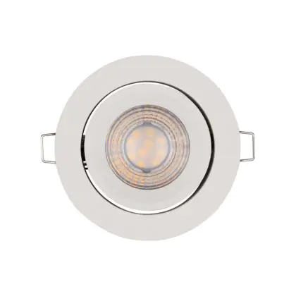 Der LED-Einbauspot kommt mit der Farbtemperatur 2700K - Extra Warmweiß daher. Als Faustregel gilt: Je niedriger der Kelvinwert, desto gemütlicher wirkt das Licht.
