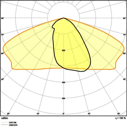 Diese LED-Straßenbeleuchtung strahlt Licht mit einer extra warmweißen Farbtemperatur von 2.700 Kelvin ab. Diese Lichtfarbe mit einem sehr hohen Rotanteil ist dafür vorgesehen, eine angenehme Atmosphäre zu kreieren.