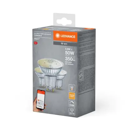 Beschreibung Ledvance Smart+ Wifi GU10 Spot 5W 350lm 45D - 827 Extra Warmweiß | Dimmbar - Ersatz für 40W