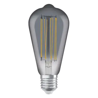 Die Ledvance Vintage 1906 LED E27 Edison Smoke 11W 500lm - 818 Extra Warmweiß | Dimmbar - Ersatz Für 42W ist eine effiziente E27 LED-Lampe mit Retrodesign und der perfekte Ersatz für Ihre konventionellen 42W Lampen mit E27. Zudem strahlt sie Licht in der Farbtemperatur 1800K - Extra Warmweiß aus und punktet durch eine lange Lebensdauer.