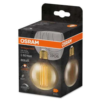Aufgrund des geringen Energieverbrauchs von nur 8.8W sparen Sie mit der Vintage LED-Lampe von Ledvance bis zu 90 % Ihrer Energie - sowie Instandhaltungskosten gegenüber einer klassischen Glühbirne.