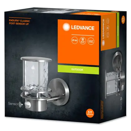 Beschreibung Ledvance Wandleuchte Post Endura Classic E27 Stahl | Up - Bewegungs- und Lichtsensor