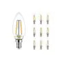 Die Mehrfachpackung 10x Noxion Lucent LED E14 Kerze Fadenlampe Klar 2.5W 250lm - 827 Extra Warmweiß | Ersatz für 25W ist eine effiziente E14 LED-Lampe mit Retrodesign und der perfekte Ersatz für Ihre konventionellen 25W Lampen mit E14. Zudem strahlt sie Licht in der Farbtemperatur 2700K - Extra Warmweiß aus und punktet durch eine lange Lebensdauer.