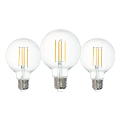 Die Mehrfachpackung 3x Eglo LED Globe E27 Fadenlampe Klar 12W 470lm - 827 Extra Warmweiß | Ersatz Für 40W ist eine effiziente E27 LED-Lampe mit Retrodesign und der perfekte Ersatz für Ihre konventionellen 40W Lampen mit E27. Zudem strahlt sie Licht in der Farbtemperatur 2700K - Extra Warmweiß aus und punktet durch eine lange Lebensdauer.