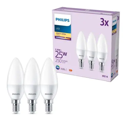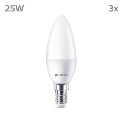 | Herstellername | Box 3 stuks - Philips LED Kaarslamp Mat - 25 W - E14 - Warmwit licht | |