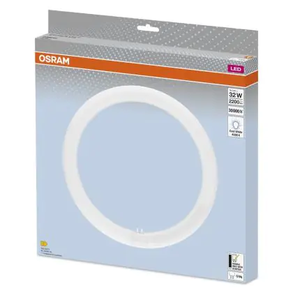 Die Mehrfachpackung 4x Osram LED Röhre T9 Rund (EM/Mains) 18.3W 2200lm - 840 Kaltweiß | Ersatz Für 32W ist eine effiziente LED-Röhre und der perfekte Ersatz für Ihre konventionelle Leuchtstoffröhre mit 32W und einem G10q (4-Pins). Die Röhre hat eine Länge von 300 mm und einen Durchmesser von 300 mm. Zudem strahlt das Produkt Licht in der Farbtemperatur 4000K - Kaltweiß aus und punktet durch eine lange Lebensdauer.