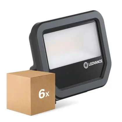 Der Mehrfachpackung 6x Ledvance LED-Scheinwerfer Aluminium Schwarz 17W 2200lm 100D - 830 Warmweiß | IP66 - Symmetrisch ist ein Scheinwerfer und strahlt Licht in der Farbtemperatur 3000K - Warmweiß aus. Zudem punktet der LED-Scheinwerfer durch eine lange Lebensdauer.