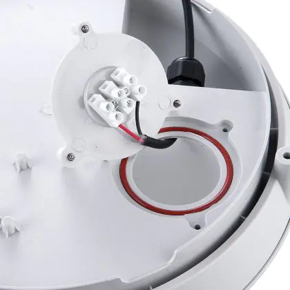Die zeitlose Noxion-Bulkhead verfügt sie über einen Bewegungs- und Dämmerungssensor mit einer Reichweite bis zu 8 Metern. Optisch punktet die LED mit schlanker Bauweise, einem Durchmesser von 300 mm sowie einem grauen Gehäuse aus Polycarbonat (unzerbrechlich). Sie ersetzt 2x 18 Watt und benötigt selbst lediglich 13 W. Die Leuchte ist außen einsetzbar und IP66- und IK10-klassifiziert.