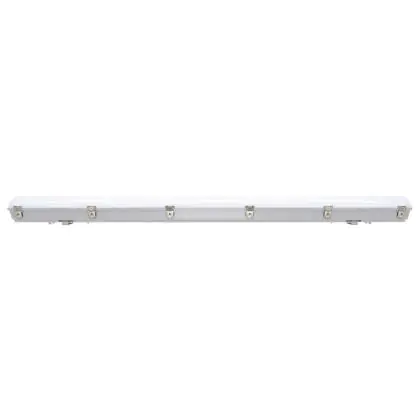 Die Noxion LED-Feuchtraumleuchte der Reihe Pro ist 150 cm lang. Sie ersetzt zwei herkömmliche Leuchten à 58 Watt und benötigt dabei selbst lediglich 1x 58 Watt. Diese LED hat eine tageslichtweiße Farbtemperatur (6.500 Kelvin) und kann über DALI gedimmt werden. Sie ist IP66- und IK08-klassifiziert und kann daher sowohl innen als auch außen angebracht werden. Dank der praktischen Durchgangsverdrahtung können Sie ganz einfach mehrere Leuchten miteinander verbinden.