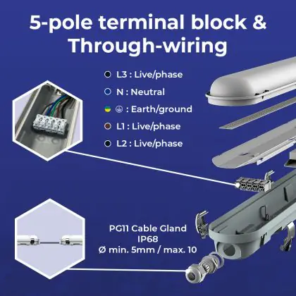 Die Noxion LED-Deckenleuchte Poseidon V3.0 ist ein idealer Ersatz für herkömmliche Leuchtstofflampen. Dank ihrer hohen Effizienz von bis zu 140 Lumen pro Watt spart die Poseidon V3.0 bis zu 50 % Energie. Diese wasserdichte LED-Leuchte hat die Schutzklassen IP65 und IK10, was bedeutet, dass die Leuchte sowohl im Innen- als auch im Außenbereich eingesetzt werden kann. Sie ist auch ideal für nasse und / oder staubige Bereiche und somit perfekt für den Einsatz in Lagerhallen, auf Parkplätzen oder in Tunneln. Der halbtransparente Prismadiffusor sorgt für eine angenehme Lichtpräsentation. Ein weiterer Vorteil ist die Durchgangsverdrahtung, so können Sie ganz einfach mehrere Produkte miteinander verbinden. Wenn Sie Ihre TL-Leuchten durch die Poseidon LED-Leuchte ersetzen, werden Sie enorme Einsparungen bei den Energie- und Wartungskosten und garantieren eine kurze Amortisationszeit.