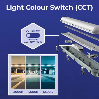 2. CCT: Sie wählen über einen Schalter aus 2 oder 3 festen Farben aus, z. B. Warmweiß oder Kaltweiß.