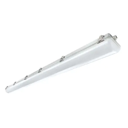 Die Noxion LED-Feuchtraumleuchte der Reihe Pro ist 150 cm lang, DALI-kompatibel und damit auch dimmbar. Sie ersetzt eine konventionelle Leuchte mit 58 Watt. Selbst verbraucht die LED nur 33 Watt – eine schnelle Amortisation der Anschaffungskosten ist somit garantiert. Mit einem Wert von 4.000 K hat sie eine kaltweiße Farbtemperatur. Das Produkt ist IP66- und IK08-klassifiziert. Hinweis: Dieses Produkt ist keine Notfallbeleuchtung.