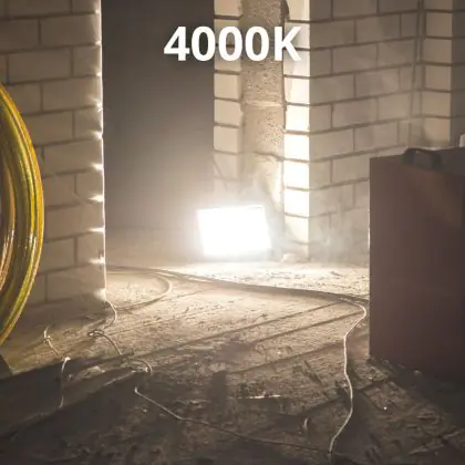 Das LED-Flutlicht kommt mit der Farbtemperatur 4000K - Kaltweiß daher. Als Faustregel gilt: Je höher der Kelvinwert, desto natürlicher wirkt das Licht, je geringer desto mehr Rotanteile hat es.