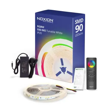 Beschreibung Noxion LED-Streifen Naga 5 Meter Komplettset - 24V - 90LEDs/m - 12W/m - RGBW - 930-965 Abstimmbares Weiß | 12mm - IP20 - Höchste Farbwiedergabe - SMD2835+SMD5050