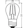 Die Osram Classic LED E27 Kugel Fadenlampe Klar 4W 470lm - 840 Kaltweiß | Ersatz Für 40W ist eine effiziente E27 LED-Lampe mit Retrodesign und der perfekte Ersatz für Ihre konventionellen 40W Lampen mit E27. Zudem strahlt sie Licht in der Farbtemperatur 4000K - Kaltweiß aus und punktet durch eine lange Lebensdauer.