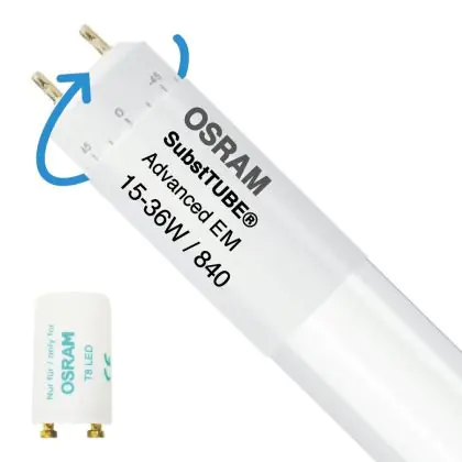Sie benötigen einen LED-Starter, wenn die Leuchtstofflampen in Ihrer aktuellen Leuchte ebenfalls einen Starter haben. In diesem Fall besitzen Sie eine Leuchte mit einem herkömmlichen Vorschaltgerät (EM). Ein LED-Starter ersetzt Ihren aktuellen Starter und sorgt dafür, dass eine LED-Röhre funktioniert.