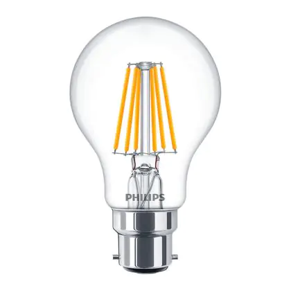Die Philips Classic LED Glühbirne B22 Birne Klar 8W 806lm - 822-827 Dim to Warm | Dimmbar - Ersatz für 60W ist eine effiziente B22 LED-Lampe und der perfekte Ersatz für Ihre konventionelle Halogenlampe mit 60W und einem B22-Sockel (Bajonettsockel). Zudem strahlt das Produkt Licht in der Farbtemperatur 2200K - 2700K Dim To Warm aus und punktet durch eine lange Lebensdauer.
