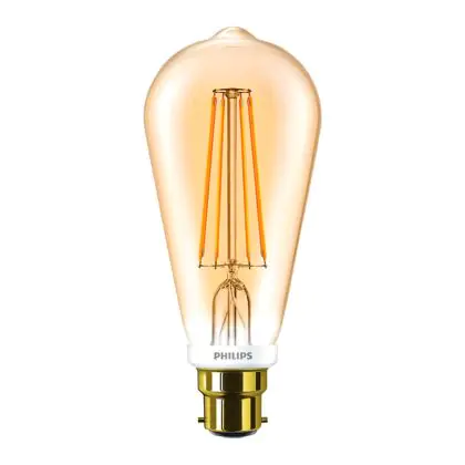 Die Philips Classic LEDbulb B22 ST64 7W 820 Gold | Extra Warmweiß - Dimmbar ist eine besonders effiziente B22 LED-Lampe. Die goldbeschichtete Filamentlampe ist nicht nur optisch ein schönes Highlight, sondern überzeugt auch mit hochwertiger LED-Technik und einem extrem geringen Energieverbrauch. Weiterhin ist die LED-Lampe dimmbar.