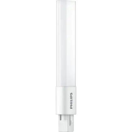 Die Philips CorePro PL-S LED 5W 840 | Kaltweiß - 2-Stift ist der 1:1-Ersatz für ausgediente Kompaktleuchtstofflampen mit 9 W. Die LED mit 2-Stift-Sockel ist für die Kombination mit einem konventionellen Vorschaltgerät (kurz: KVGs, EM) vorgesehen und sorgt für hohe Kosteneinsparungen. Die PL-S-Lampe kann in Downlights, sowie Steh- und Wandlampen eingesetzt werden.